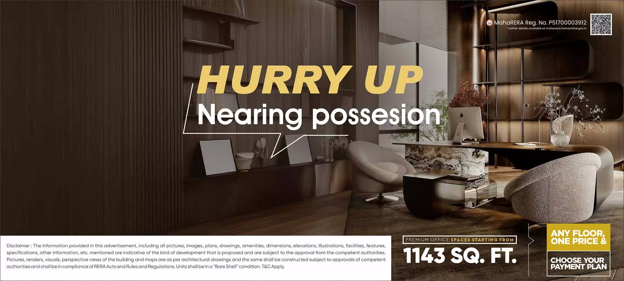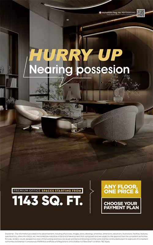 Disclaimer:All the images, visuals, perspectives, illustrations, model, specifications, plans, designs, drawings, dimensions, maps, facilities, amenities, features, and other information / details herein are conceptual, indicative and for representation purpose only and are not to scale, and is subject to the approval of the respective authorities. The Promoters/Developers/Architect reserve the right to add, alter, delete or replace any of these in the interest of development, without any notice or obligation. This printed material does not constitute an offer or contract of any nature whatsoever between the Promoters / Developers and the recipient. All transactions in this development shall be subject to and governed by the terms & conditions of the Agreement for Sale to be entered into between the parties. Conditions Apply